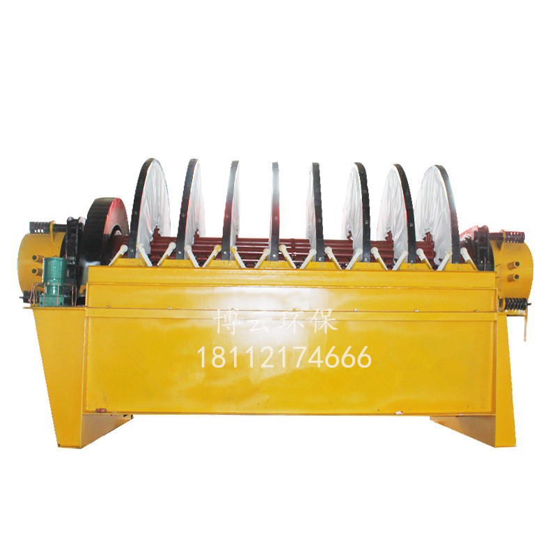 PG系列盤式真空過濾機 (1)扇形濾板脫水孔分布均勻,孔率合理,筋條尺寸大,由高強度工程塑料制成,壽命提高了2-3倍。 (2)濾液管過濾數面大,分配頭腹腔容積大,提高了抽氣率和濾液排放效果。 (3)耐磨錦綸、單或復絲濾布使脫餅率高且不易堵塞,使用壽命長。 (4)多點干油泵集中多點自動潤滑。 (5)濾布自動清洗裝置,保持了其良好的脫水效果。 (6)臥式強制高速攪拌、軸端采用橡膠及石墨盤根和水壓差三重密封不漏漿。 (7)主傳動無級變速,依物料的濃度及流量調節(交流調速電機或變頻器),以求達到理想的工作效果 。 (8)每盤由20片扇形板組成,加強了過濾過程控制,成餅厚度均勻。 (9)磨擦片采用特制耐磨硼鑄鐵,剛柔相濟密封佳,使用壽命達到十年以上。 (10)濾液管為高強度耐磨陶瓷復合鋼管,提高壽命10倍以上。 (11)濾液管與濾扇接口去掉下法蘭,采取模具定位直接焊接,減少了90%可能的漏氣點。